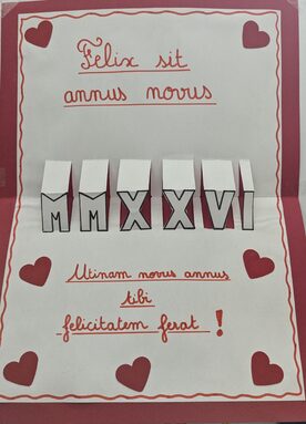 Par Blandine Mader, publié le mercredi 21 janvier 2026 08:39 - Mis à jour le mercredi 21 janvier 2026 08:39Les élèves de 5e et 4e latinistes ont confectionné des cartes de voeux en latin pour 2026. -